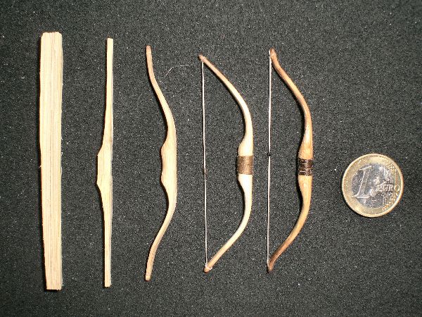 Hier sehen Sie Fotos von selbstgebauten Minibögen. Der jeweilige Bogenbauer ist in Klammern angegeben.